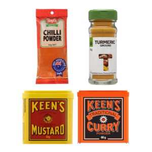 Chilli Powder, Curry Powder, Mustard Powder and Turmeric: