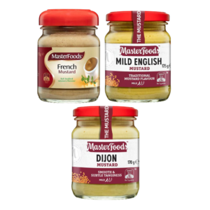 French, Dijon and English mustards: